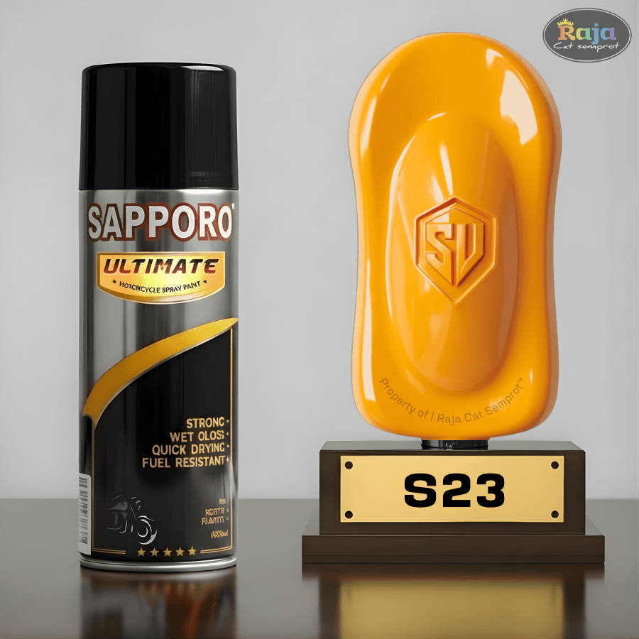 S23 Orange Yellow merupakan solid colour berwarna kuning ke-orange-an yang memiliki hasil akhir glossy.