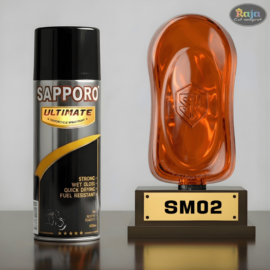 SM02 Smoke Orange merupakan jenis cat transparan berwarna Orange dari Sapporo Ultimate.